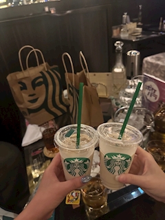 こんばんわん れいかです 昨日もありがとうございました! 毎日ハッピー スタバは絶対に ほうじ茶クラシックティーラテしか飲まない ‼️ あれ水みたいに飲める 毎日でも飲みたいなん😌笑 可愛いお花🌼 お花もらうと女の子の気分になる! うれしかったなー🌼 土曜日!出勤です よろしくです 🩵🩵🩵