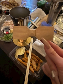 箸置きリボンもったいないから、 蝶ネクタイにした(^ν^) ネクタイ風でもかわいい(笑) アフター中ずっとこれしてた🫶🏻